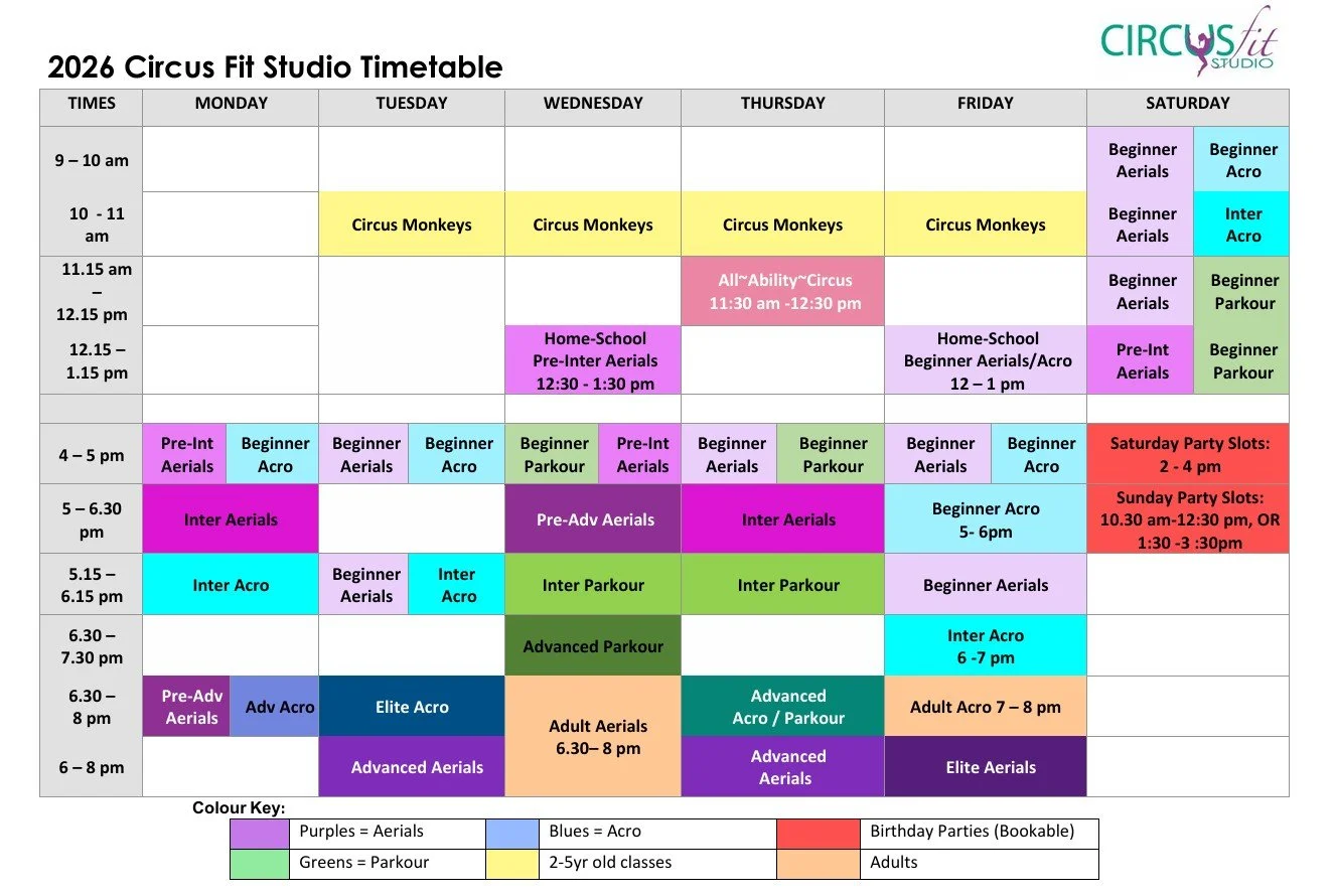 CircusFit Studio current classes 2025/2026